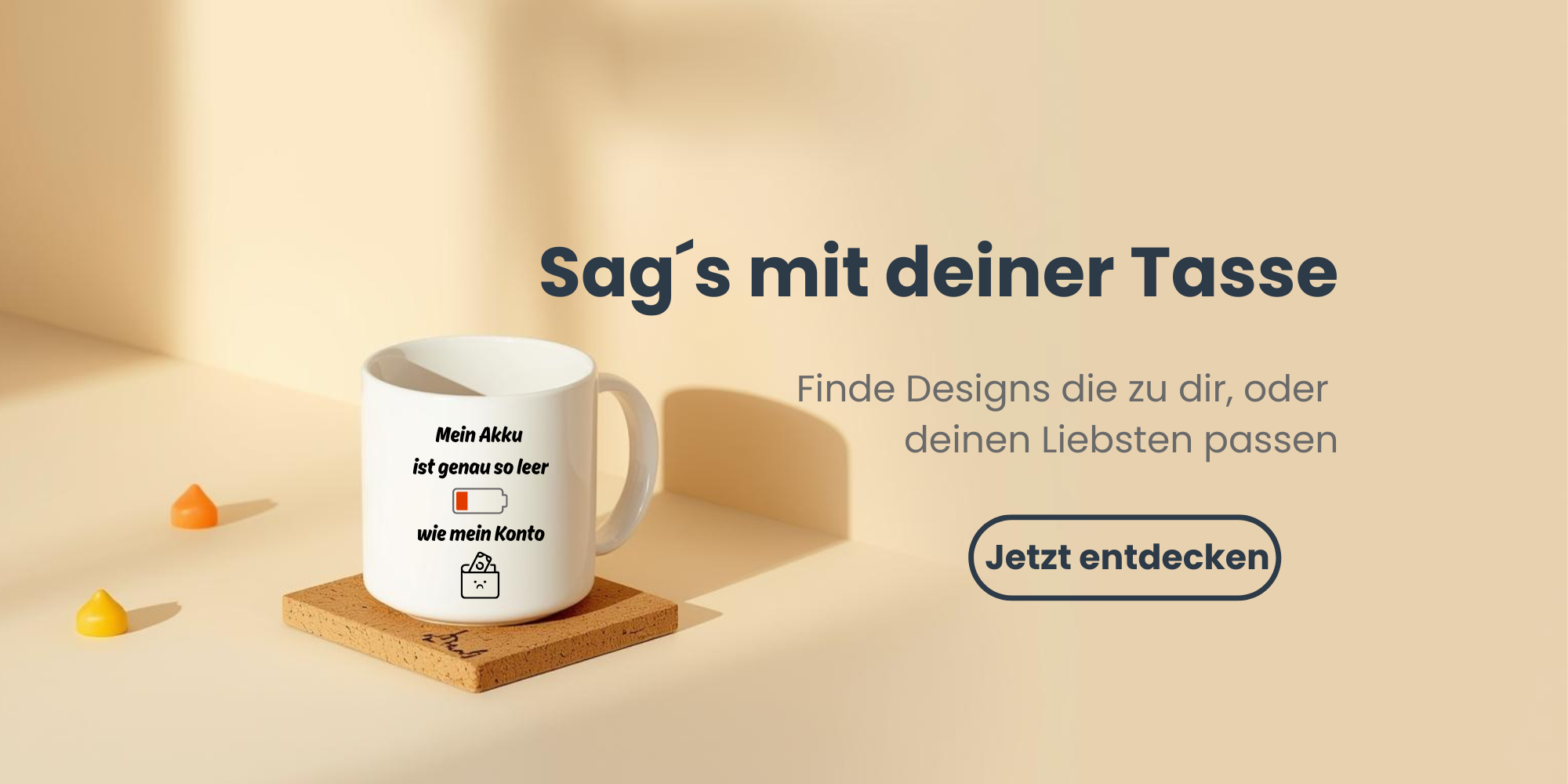 Bei Printastic findest du lustige Tassen und Korkuntersetzer mit Sprüchen, die Alltag, Büro und besondere Momente auflockern.